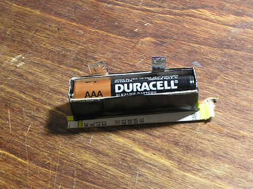 Prueba hacia fuera. Sólo pop en una batería y conecte los cables a las pestañas. No importa qué camino usted pone la batería en porque no hay un muelle que conecta el terminal negativo.
