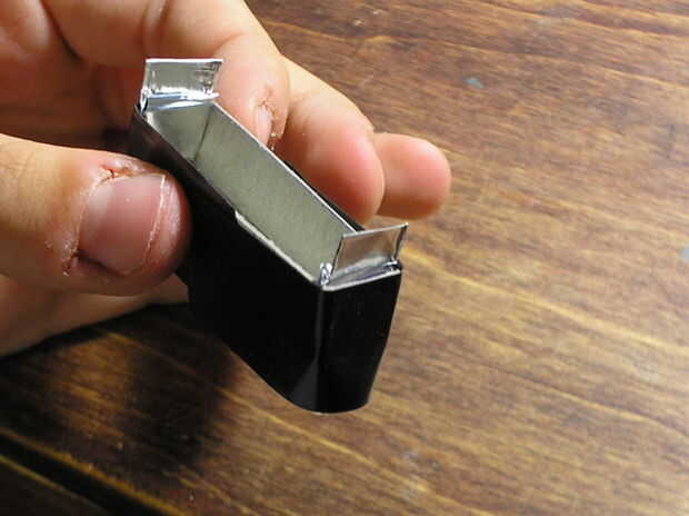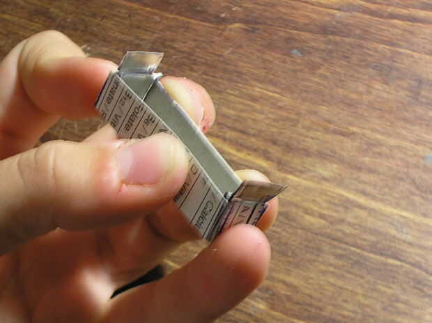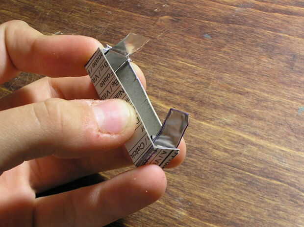 Envuelva la cinta alrededor de los lados como se ve en la tercer foto. Luego corte la cinta en las esquinas y plegar la cinta en la parte inferior.