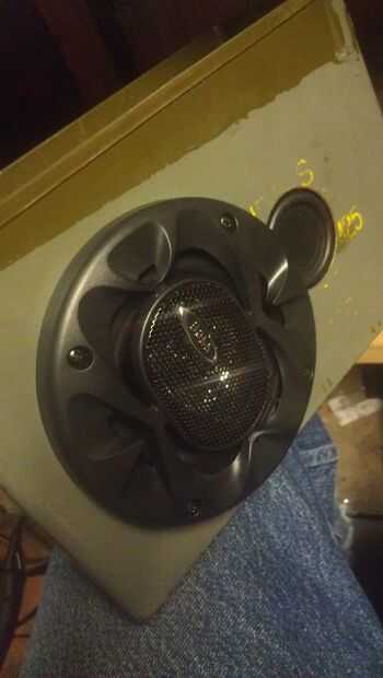 mayoría de los altavoces tiene una placa sobre ellos para tornillos. ahora no utilice pegamento caliente en los altavoces porque sonará bien, pero no se ven bien y lo mató el último orador. va a ser mucho más robusto y mejor busca si atornillar en. Sé cómo tentador que pistola de pegamento caliente es especialmente si tienes un industrial como yo pero no vale la pena. Marque y perfore los agujeros para tornillos y tornillo ellos pulg. a hacer claro.