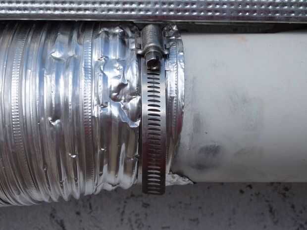 - Una vez que tienes lo correctamente, aproximadamente 1" superpuestos, coloque una abrazadera de manguera de 4" sobre la Junta y apretar.