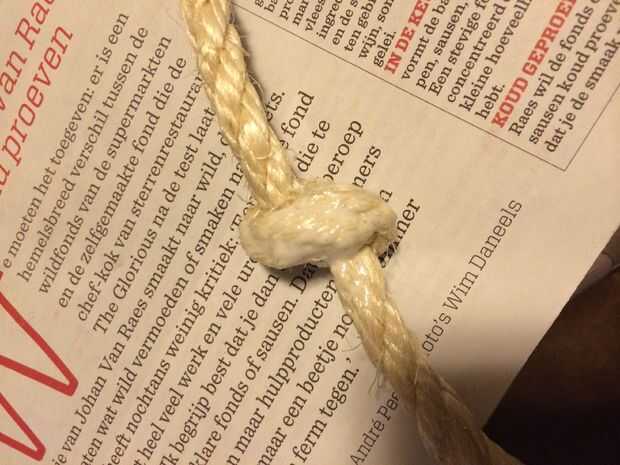Agujero en el centro un sólo lo suficientemente grande como para que la cuerda a través y después de haces una ranura que la cuerda sólo cabe en.