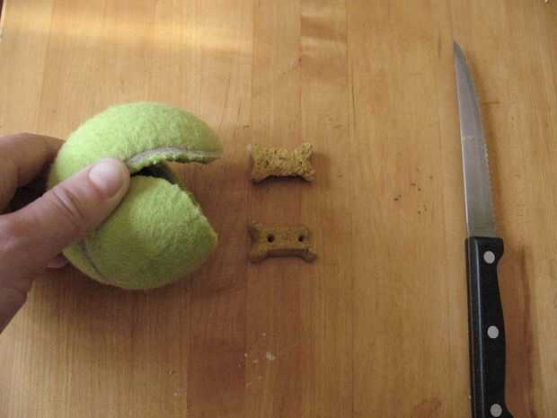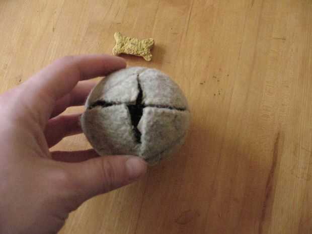 Cortar sólo el fieltro y la creación de un bolsillo profundo crean un buen espacio para croquetas para adaptarse. Nuestro perro tiende a rasgar el fieltro.