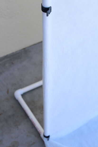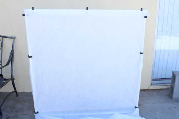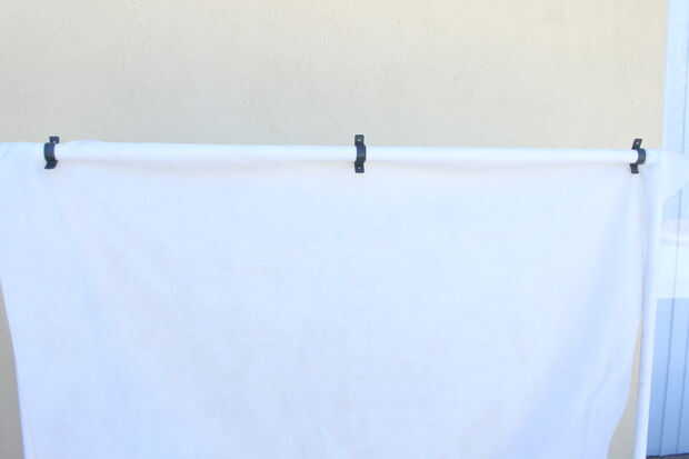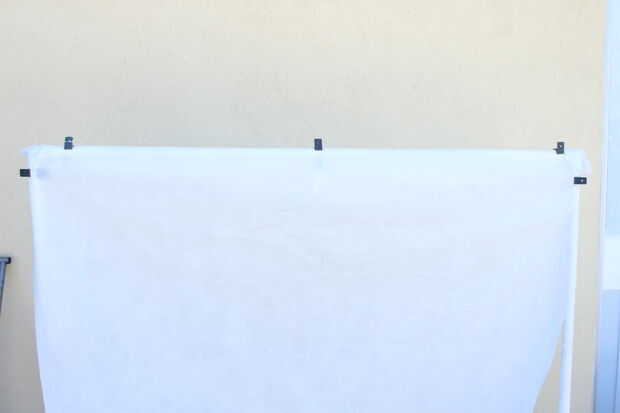 Lugar 3 clips a lo largo de la parte superior del escenario como eso. Luego gire todos los clips para que las espaldas de ellos estén orientadas hacia la parte posterior del escenario. Esto asegura la máxima "tensión" con la tela.