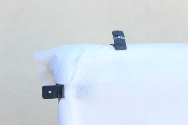 Luego siguen el mismo patrón para abajo de los lados del marco. Ver ambos lados con la parte posterior de los clips de frente y luego gire a todos después de que se colocan.