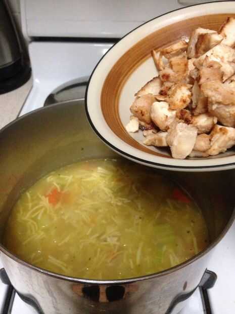Finalmente después de 5 minutos puede Agregar en el pollo a la sopa. su arranque a ver mmmmm sabroso