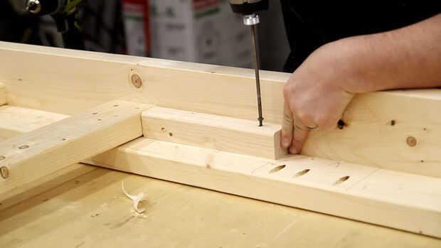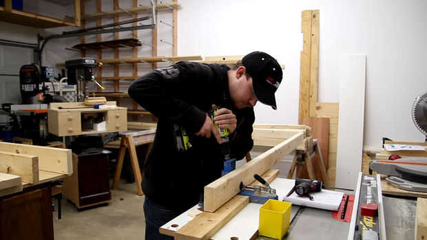 Con los marcos de hecho puedo centrar mi atención en las piernas. Cada pata es una forma de L formado por conseguir un 2 x 4 a un 6 x 2. 2 x 4 recibirán los agujeros de bolsada. El espaciado de los agujeros de bolsada es crítico. No necesariamente por la fuerza sino para fines de apariencia. Estos deben colocarse de modo que se cubrieron para arriba al instalar los peldaños de escalera. (Foto 1)