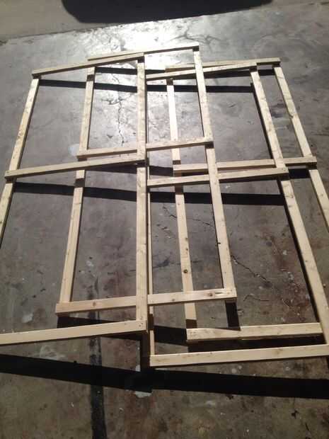 Una vez montado, nos pinta los marcos y deje secar al sol. Una vez secas estira tela que complementa la pintura, o usa pintura que complementan la tela dependiendo de cómo se mire.