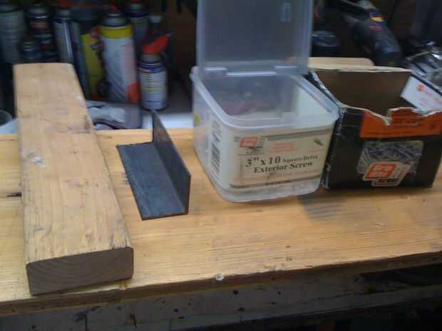 5) tornillos: se utilizó estándar 2" tornillos para madera para sujetar la pieza superior (barra de madera contrachapada, madera, metal) y utilizan 3" acero inoxidable tornillos para sujetar el 2 x 4 entre sí.