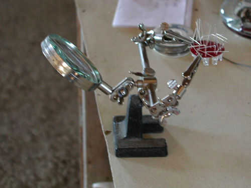 Perforar la tarjeta con quieras muchos agujeros para hacer la bombilla. Hicimos 12 bombillas de VCC, porque nuestras luces funcionan con DC. Hicimos una bombilla con 6 LEDs blancos (que no es muy brillante, pero trabaja para una lámpara) y uno con una mezcla de varios LEDs blancos y amarillos. Sin embargo, muchas luces que desea y cualquier tensión que usted necesita, usted tendrá que hacer el regulador de tensión coinciden con.