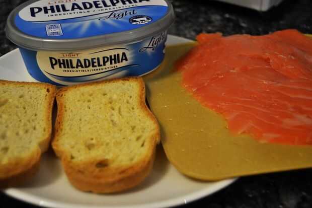 Fácil y rápido tostado de queso y salmón. (1 / 2 paso)