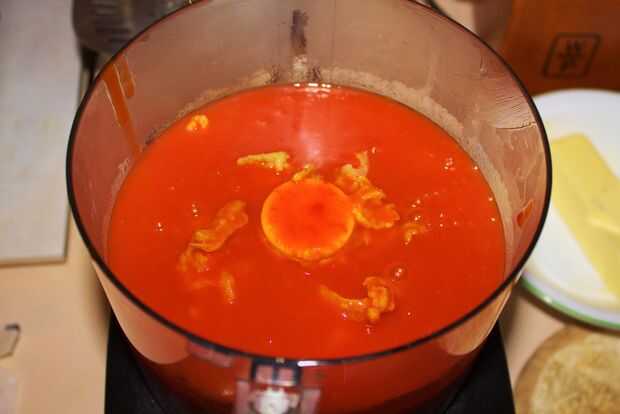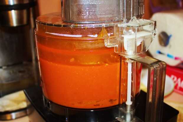 Después vierte en la mezcla de salsa picante, el procesador en marcha, entonces cae en la mantequilla, un pat a la vez, a la espera de cada uno incorporar a la salsa (no tarda mucho). Seguir adelante hasta que esté todo en allí. Puede limpiar los lados y la tapa del recipiente una vez para asegurarse de que todo está mezclado.