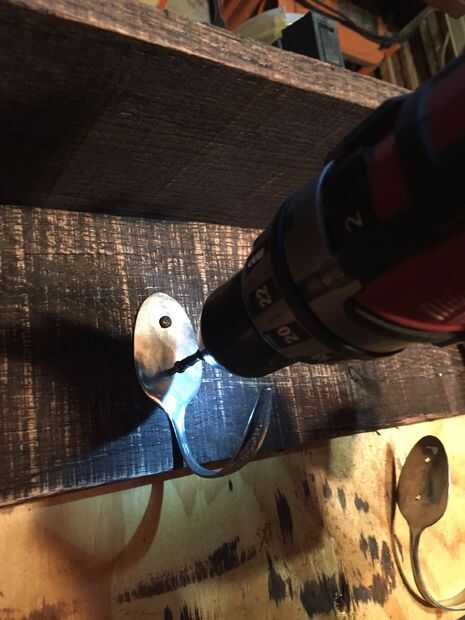 Todo lo que queda por hacer es atornillar los tornillos. Usé 1/2 tornillos de acero inoxidable para esto. Primero tienes que medir entre las piezas laterales y el centro. Después de atornillar el centro uno en el lugar las otras cucharas donde crees que se ven mejor. Para mi fue 4. De la pieza lateral.