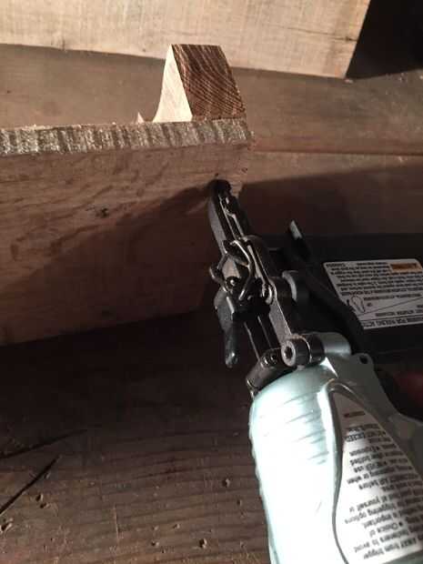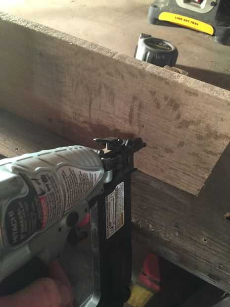 Clavó la base primero. Voltee la espalda y usar una tabla para alinear todo. Uñas por la parte posterior de la Junta de la plataforma en la pieza lateral. Unos 4 clavos lo hará.