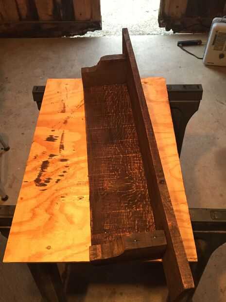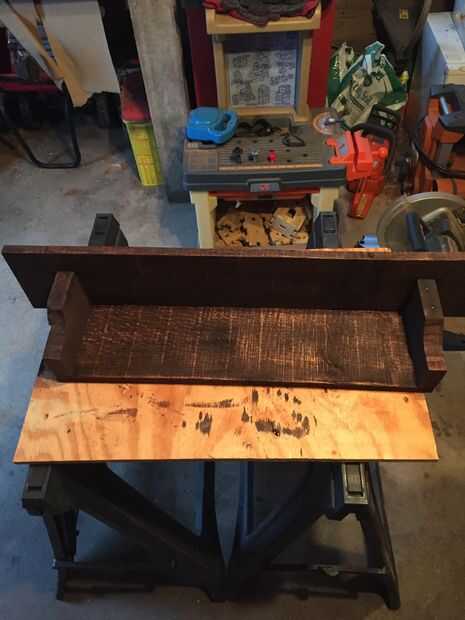 y entonces la mancha. No tienes que tener cuidado con este trabajo de mancha. Usted puede simplemente glob se en con cualquier trapo o pincel viejo. Una vez que el ser todo cubierto, eliminar el colorante sobrante con un trapo. Usé rojo caoba de minwax porque me encanta como se ve en las plataformas pero puedes usar lo que quieras. Mientras la mancha seca, puede iniciar en las cucharas