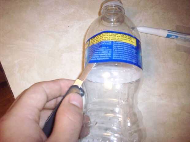 Descarga el agua hacia fuera, beber, o guardarlo para que comenzar hacia fuera con una botella vacía. Además, no es realmente necesario, pero quitar la etiqueta (hace que se vea más bonito).