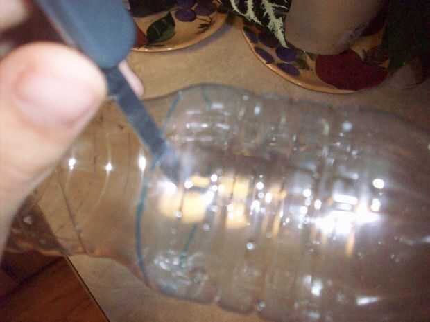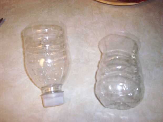 Ahora que su botella es mirando bonito y listo, corta la botella hasta la mitad. Que mi corte en la parte superior de donde se sumerge la botella, había un borde muy distinto. Si tus dificultades cortar una línea recta, un marcador de cinta hacia abajo y girar la botella donde va a cortar. Entonces usted tendrá una línea agradable guía para corte en.
