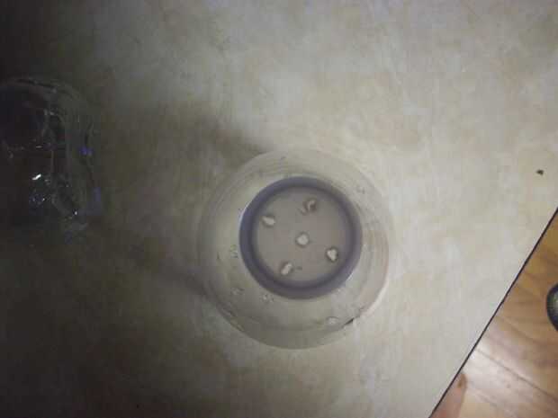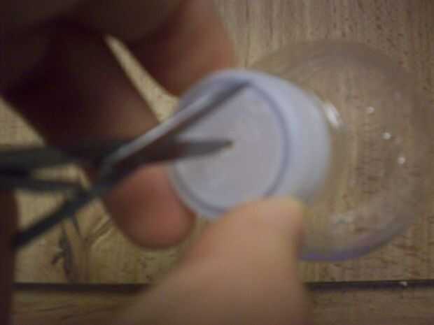 Aquí es donde la herramienta del exprimidor en el cuchillo mano, tuve que usar las tijeras porque perdí mi buen cuchillo justo antes de hacer esto. Empujar los agujeros en la tapa y alrededor de una pulgada hacia abajo de la parte superior. Perforó mis agujeros como el lado cinco de un dado en la tapa, luego 8 agujeros justo debajo de la tapa y cuatro más por debajo de la. Desea que los agujeros pequeños suficiente para que el suelo no cae a través, pero lo suficientemente grande como para drenar el agua.