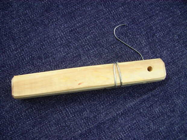Buscado un trozo de unos 10 cm. aplanados de varilla de acero. Yo pude han utilizado un alambre de acero redondo, aplanado con un martillo, pero que no es tan fácil como parece. El resorte debe tener cierta dureza; Si es muy suave y flexible, no funcionan. Con la barra el segundo agujero, doblar un extremo y atado con alambre fino a la empuñadura, para que el cuerpo de la varilla se crucen en el primer hoyo. Es más fácil ver que de explicar. Dobla el otro extremo de la varilla de acero, para manejar con el dedo índice en forma de gatillo. Añadido en julio de 2011: la primavera no tiene que ser plana, puede ser redondeada.