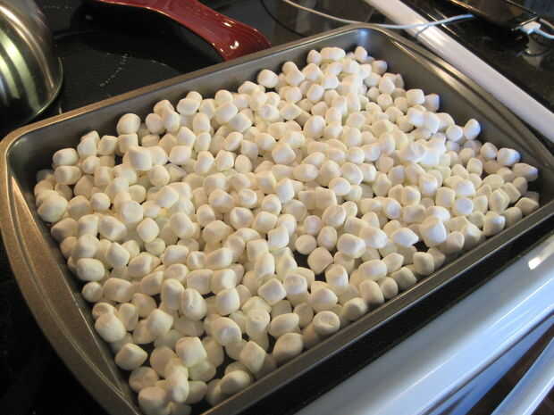 Uniformemente repartidos por su bolsa de malvaviscos mini pan entero.