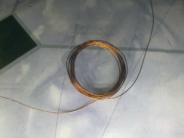 ahora toma un rollo de alambre de cobre. Dejando algunos hilos extra en la coilling de inicio final el cable alrededor de algo redondo. El cable de la bobina 20 veces y dejar algo de espacio extra al final otra vez.