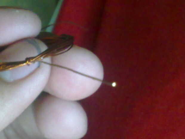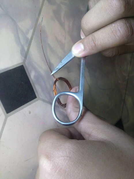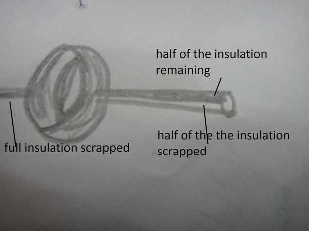 Ahora con las tijeras completamente quitar el aislante de un extremo del wire.some cosas son difíciles de exress a través de palabras .so mejor ver la picture.now dibujado a mano en el extremo eliminar mitad de aislamiento de la cillyndrically de alambre.