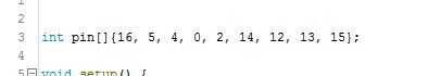 int [pin] {16, 5, 4, 0, 2, 14, 12, 13, 15};