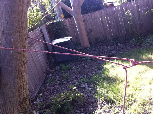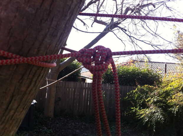 * Atar una mariposa alpina* en la parte de la cuerda desde el primer árbol de unos 60 cm (2 pies) del segundo árbol.