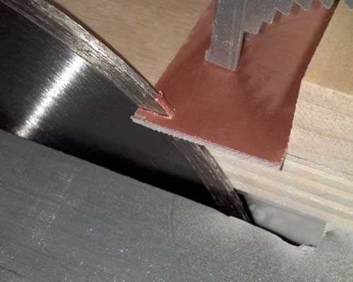 Utilizando un borde de diamante vio la lámina, y este hecho fácilmente patín te puede cortar fácilmente placas de PCB. Tengo un 10 pulgadas Sierra, pero este disco de 7 1/4 funciona muy bien.