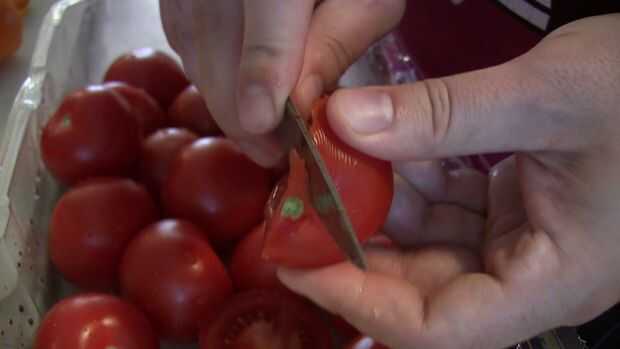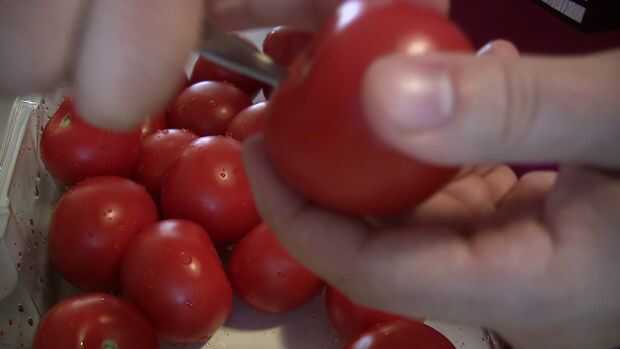 Normalmente utiliza la punta de un cuchillo y girar, que es largo y peligroso cuando tienes 100 + tomates para lotes grandes (me he accidentalmente resbalé haciendo esto, sin embargo ninguna lesión aunque), o partir el tomate y corte V en ambos lados, que es dos veces tan largo y 10 x más sucio.