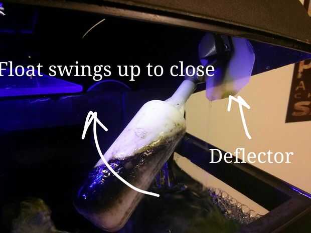 Coloque la válvula en el orificio de la campana y añadir el deflector en el lado de agua si lo desea. Ahora Conecte el tubo de la jarra y apriete, utilice una válvula en línea cerca de la válvula de flotador si lo desea.