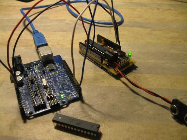 este Instructable demostrará la construcción de los huesos de un desnudo (y realmente barato... menos que $5) módulo compatible Arduino que se puede poner juntos en un pequeño trozo de placa perforada y se puede utilizar en un protoboard o independie