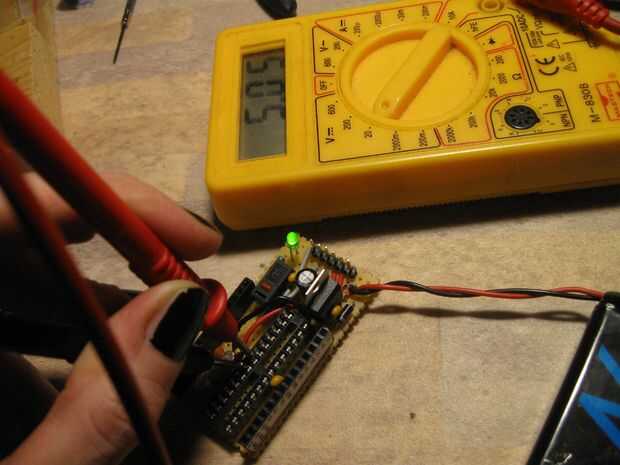 Multímetro de uso hacer algún voltaje verifica en el zócalo de la viruta. ¿Si hay 5V (y no 9 o algo) entre cada pin GND y VCC?