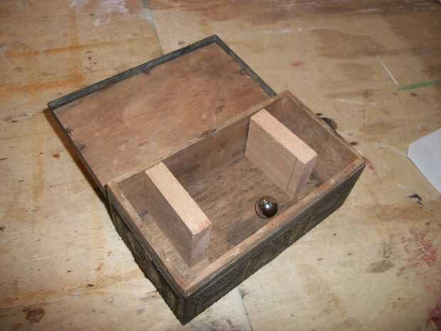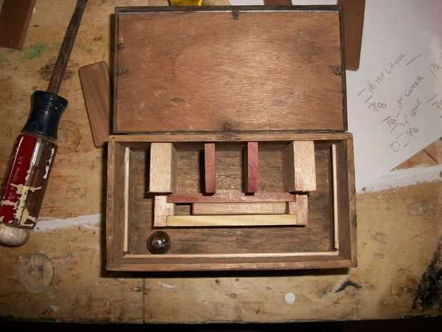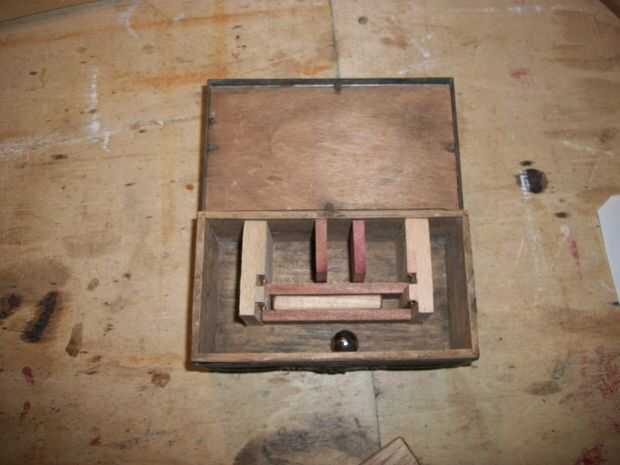 Lo que ves en las fotos es que yo estoy dividiendo las secciones deben dejar hueco para compartimentos secretos mientras el resto es para el laberinto de mármol. Un obstáculo difícil en la planta baja es un slider que tiene que ponerse en la posición correcta de la bola viajar al eje elevador interno en el centro (espacio entre los dos compartimientos). Si esto no fuera suficiente, la caja también debe ser invertida para escapar el primer nivel como la altura de cada nivel es 1.5 eso de la altura de la bola de acero, por lo que el agujero no alinear si el cuadro está orientado en posición vertical.