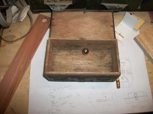 La idea era que una canica de acero atravesar los 2 niveles hasta la parte superior con el peso de la bola de acero a deprimir el mecanismo de bloqueo para desbloquear la tapa.