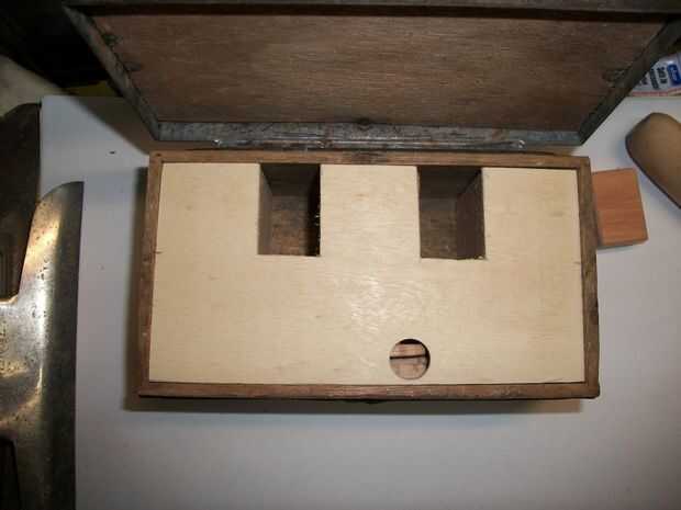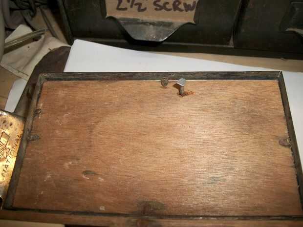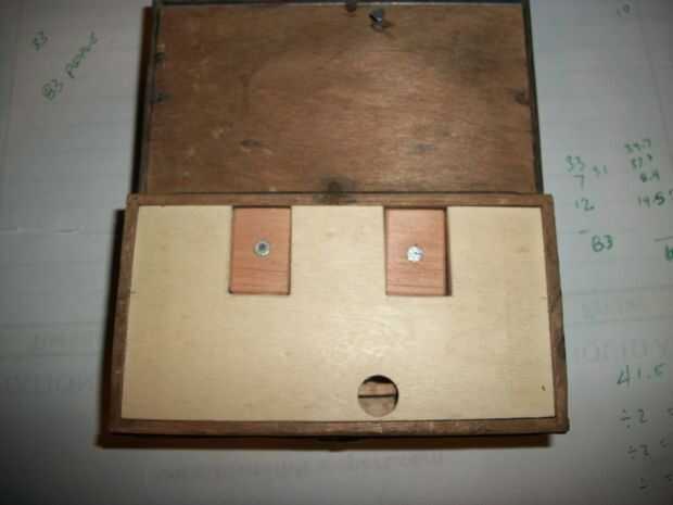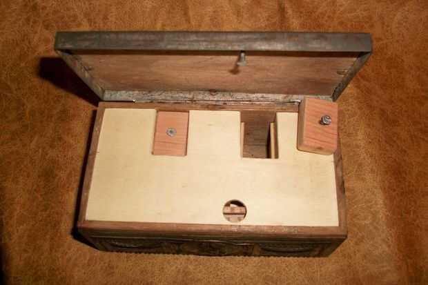 Bloques pequeños se hicieron para los dos pequeños compartimentos secretos. Un simple clavo cabeza fue empujado a través de un orificio de gran tamaño y tenía la punta cortada en un punto donde el clavo podría ser levantado por la cabeza pero no eliminado debido a una pequeña curva en el extremo de la uña.