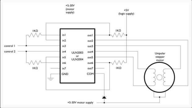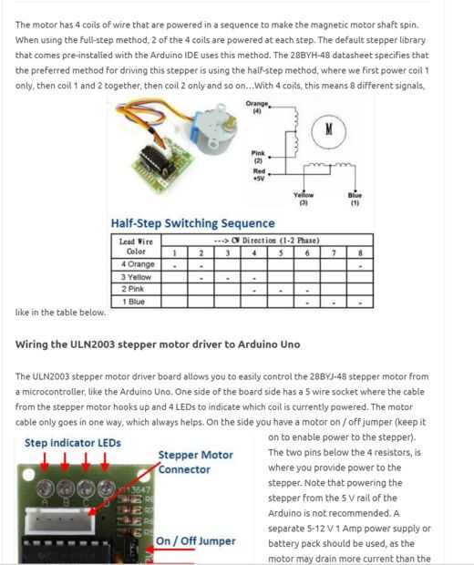 Un problema que tuve es con la biblioteca paso a paso de Arduino no funciona bien con los 5 pasos de V. Tenía problemas girando hacia la izquierda con un RPM muy lento. Puede solucionar este problema por medio paso a paso que está programado con 8 pasos totales en lugar de 4, dando el motor el un movimiento mucho más suave. El código de Arduino que controlan este movimiento está acreditado para este impresionante instructable: