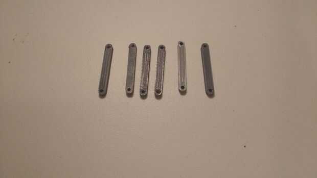 Además, la parte más importante del diseño es los orificios que permiten un clavo de filamento para conectar piezas entre sí. Una buena impresión debe tener agujeros de corte claro, así que permiten un desplazamiento de 2mm que varía de máquina a máquina. Si todos ellos coinciden, entonces estás listo para montar.