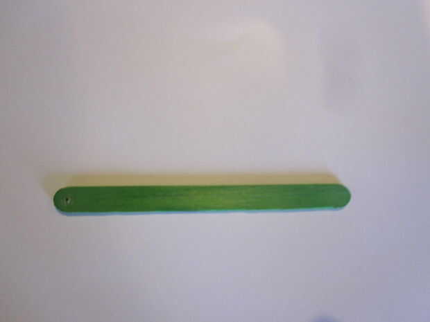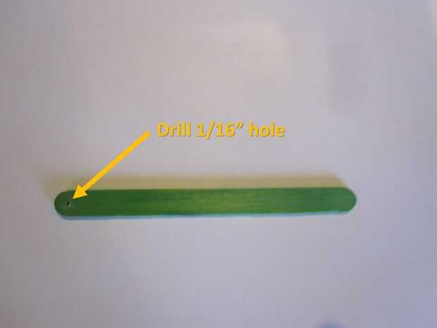 Una vez que se identifica el agujero de taladro, taladro un 1/16" ancho totalmente a través 4.5" arte / Popsicle Stick.