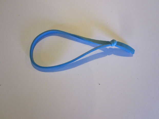 Tomar una de las mitades y hacer un lazo. Con ambos extremos, atar un nudo dejando sobre una cola de 1/2 final.