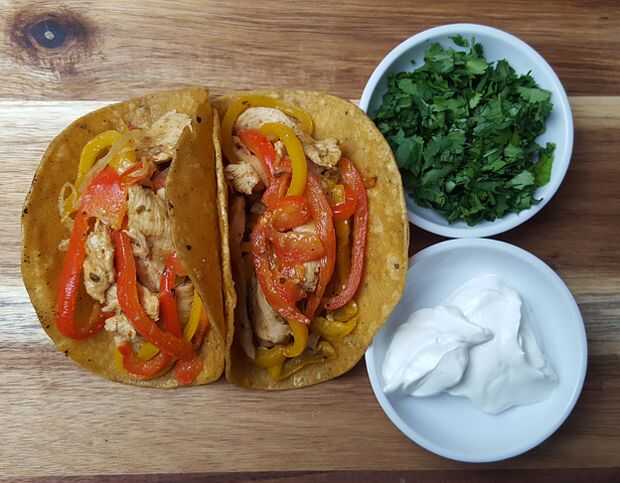 Se trata de un grandes sabor fajitas. Son rápidos y fáciles de hacer. Para una versión libre de gluten use hojas de lechuga en lugar de las tortillas o tortillas de maíz libre de gluten. Esta receta también puede encontrarse en charlieforstar.com.