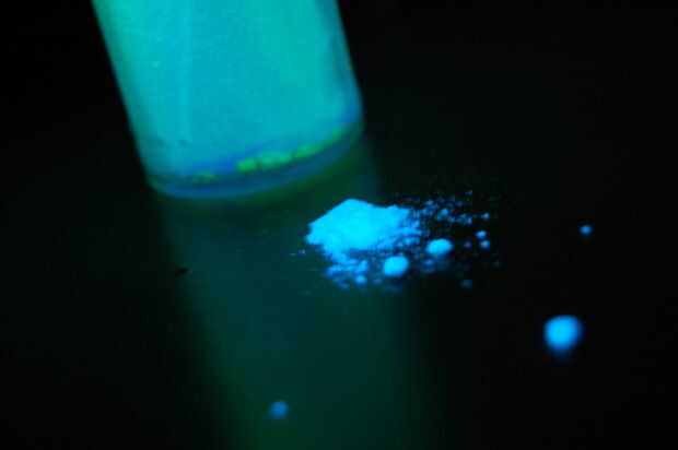 - El interior del frasco con una mezcla de aqua azul y espeluznante verde UV gowing del polvo de la capa y dejar para secar.