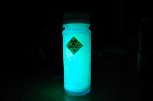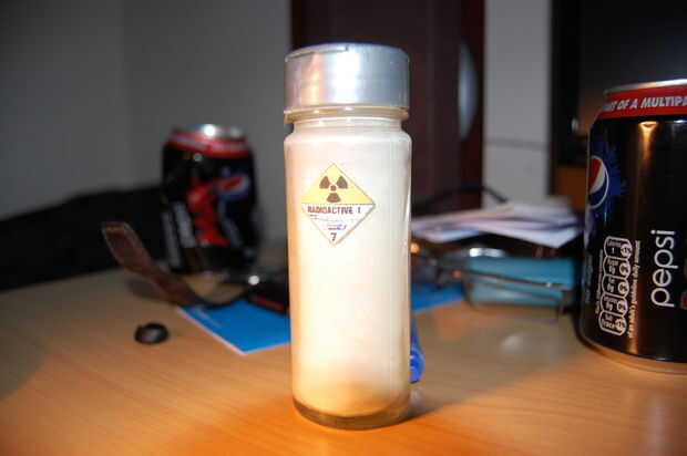 Hice esto a arrastrarse a mis compañeros de la casa. Es una olla que brilla intensamente "polonium" con una señal de radiación en él. Como una broma lo dejé en mi cuboard para confundir y detener al ladrón de galletas fantasma de nuestra diggs.