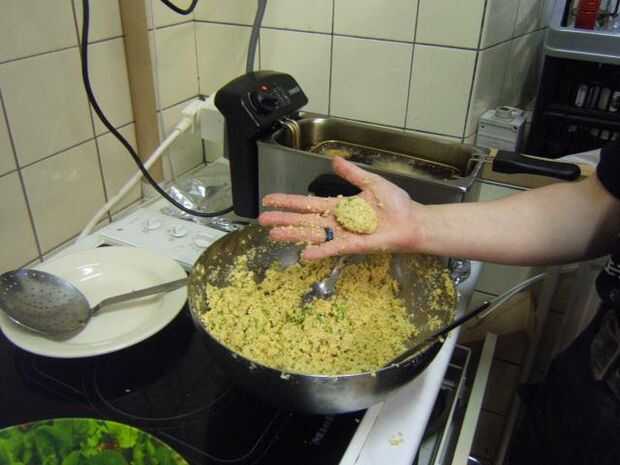 Formar una bola de masa del tamaño de una nuez, pero sligtly aplanado. Sí, con las manos, tontas. Intente que sea firme.
