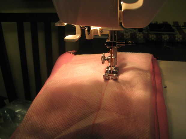 Luego coser en esa línea pero asegúrese de no tener las dos telas demasiado apretado juntos porque no caben en la barra.