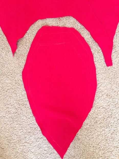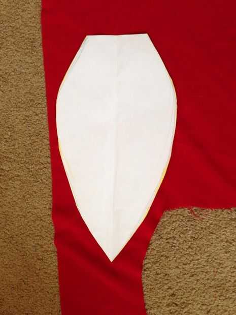 empecé haciendo un dibujo pequeño de una hoja de pétalo en un papel grueso. Hice fue 39 cm de largo, 10 cm en la parte superior y 21 cm en el punto más ancho. Marqué la tela, dejando 1,5 cm parecen los márgenes. Creo que realmente sería más fácil que el patrón de papel ya incluyen los derechos de emisión de parecer.