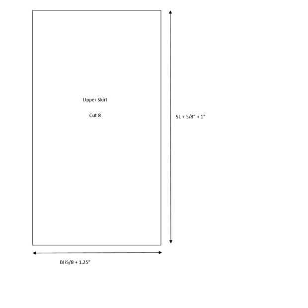 Esto es mucho más fácil. Está hecho de 8 paneles. El ancho del panel es BHS/8 más el margen de costura de 1.25". La altura del panel es SL con margen de costura de 5/8" en el dobladillo de la parte superior y 1" en la parte inferior.