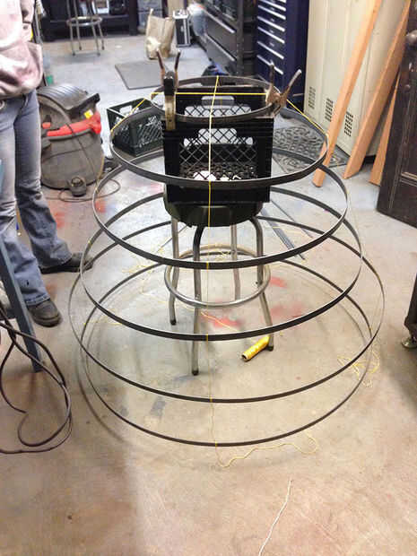 El objetivo es arreglar los aros verticalmente para inspeccionar visualmente las distancias. Los anillos son suspendidos por cuerdas con nudos corredizos en cada nivel. Las mediciones (ángulos y longitudes) pueden transferirse a las costillas de acero.