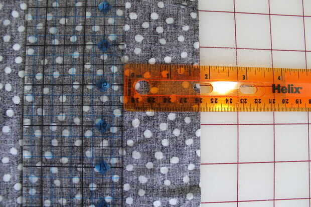 Paso 4- Usted puede elegir marcar las líneas de corte (especialmente si está usando una tijera). Sólo en línea mi regla en mi regla obligatoria y llegar a ella! Mida la longitud de las tiras que eligió (1 3/4" para mí), comprobar que es de nivel y atravesar todas las capas.