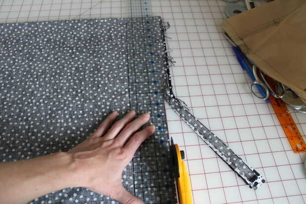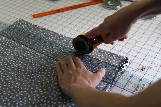 Paso 2- decidir cómo ancho desea tus franjas antes de este paso de la corte. Permiten un margen de costura de 3/8 de pulgada por costura, que significa que necesitaré permitir un margen de costura de 3/4 de pulgada, porque usted va costura a ambos lados de la tira. Si quieres una tira de una pulgada tendrá que cortar las tiras de 1 3/4 pulgadas de ancho.