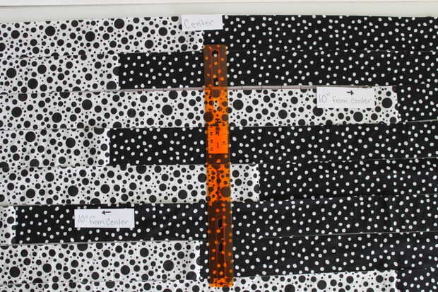 Tip *** usar la primera tira como el centro. Cualquier tira cuyo medio punto derecha o izquierda del centro no puede exceder diez pulgadas a cada lado, o no cabe la pattern.* **